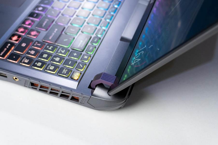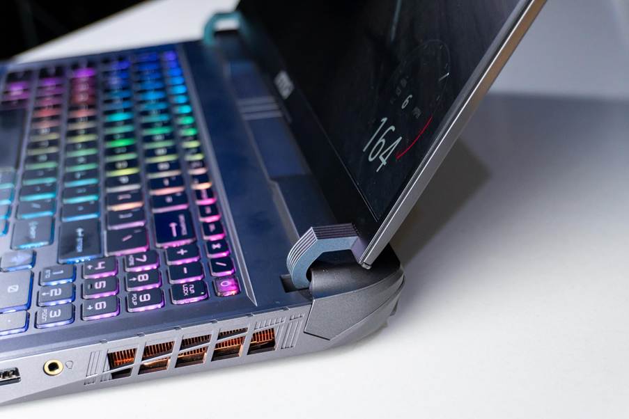 Vector A16 HX A8WHG cũng có một phần đuôi máy được thiết kế kéo dài, mở rộng không gian tản nhiệt, giúp tối ưu luồng gió lưu thông. Phần bản lề được làm bằng kim loại cực kỳ cứng cáp nhưng đồng thời vẫn cho cảm giá mở nắp máy bằng một tay mượt mà.
