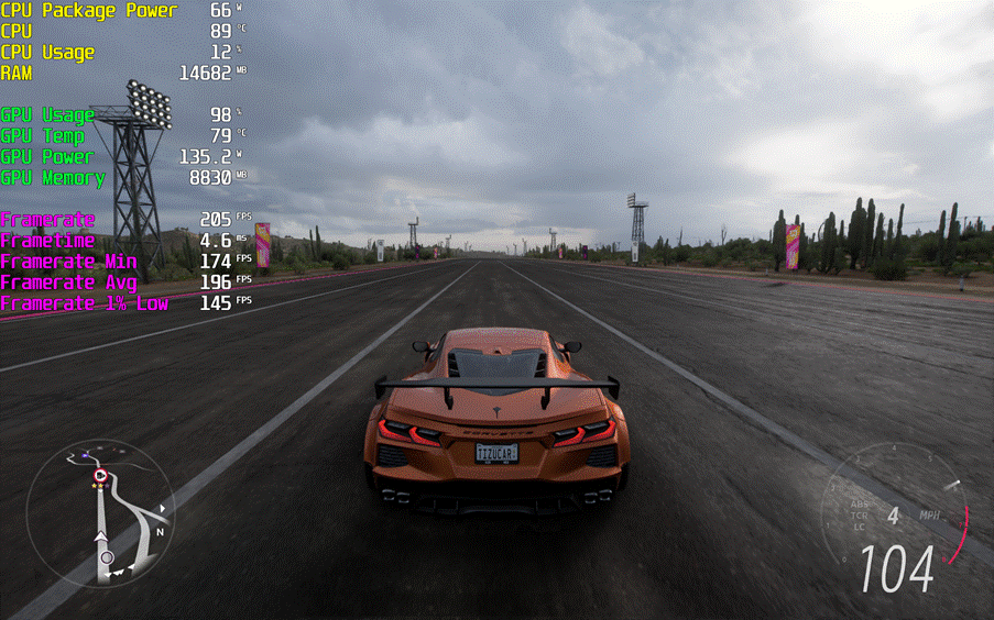 Với tựa game Forza Horizon 5 (2560 x 1600, Extreme), mức fps trung bình đạt gần 200, 1% low cũng rất lý tưởng