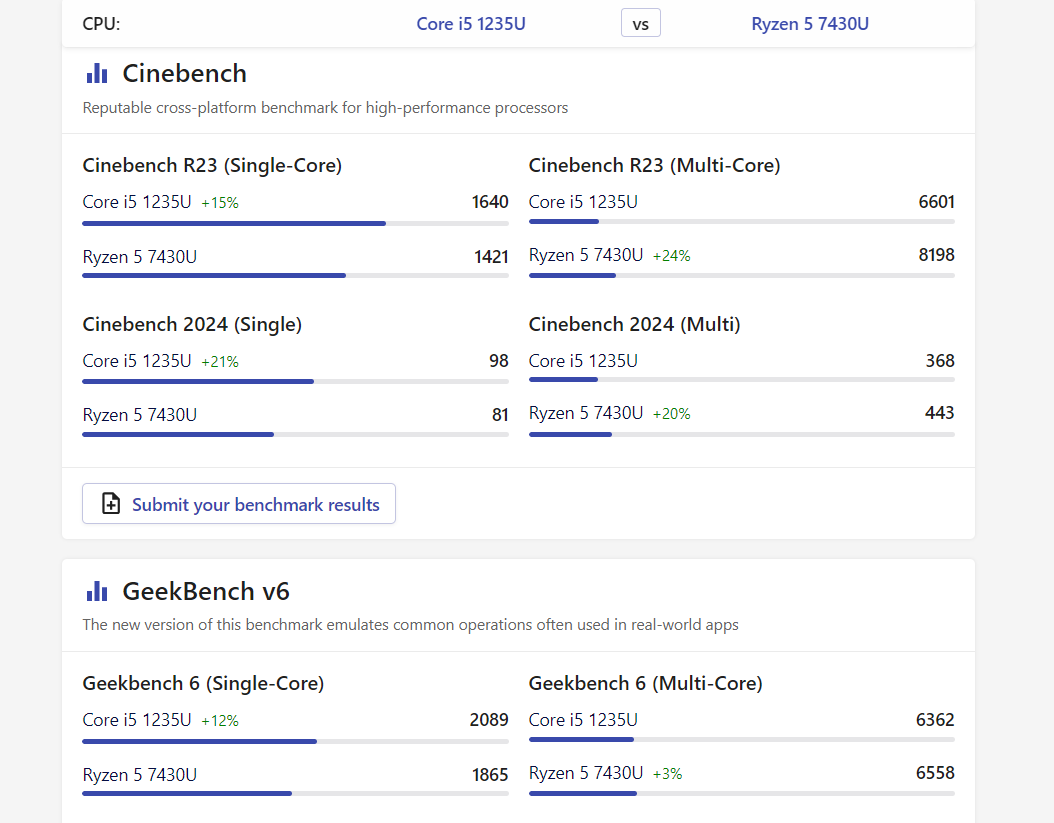 So với nhiều con chip Intel thế hệ cũ vẫn còn tồn tại trong cùng phân khúc giá, Ryzen 5 7430U rõ ràng là một lựa chọn mạnh mẽ và hiệu quả hơn cho các tác vụ văn phòng, học tập online và giải trí cơ bản.