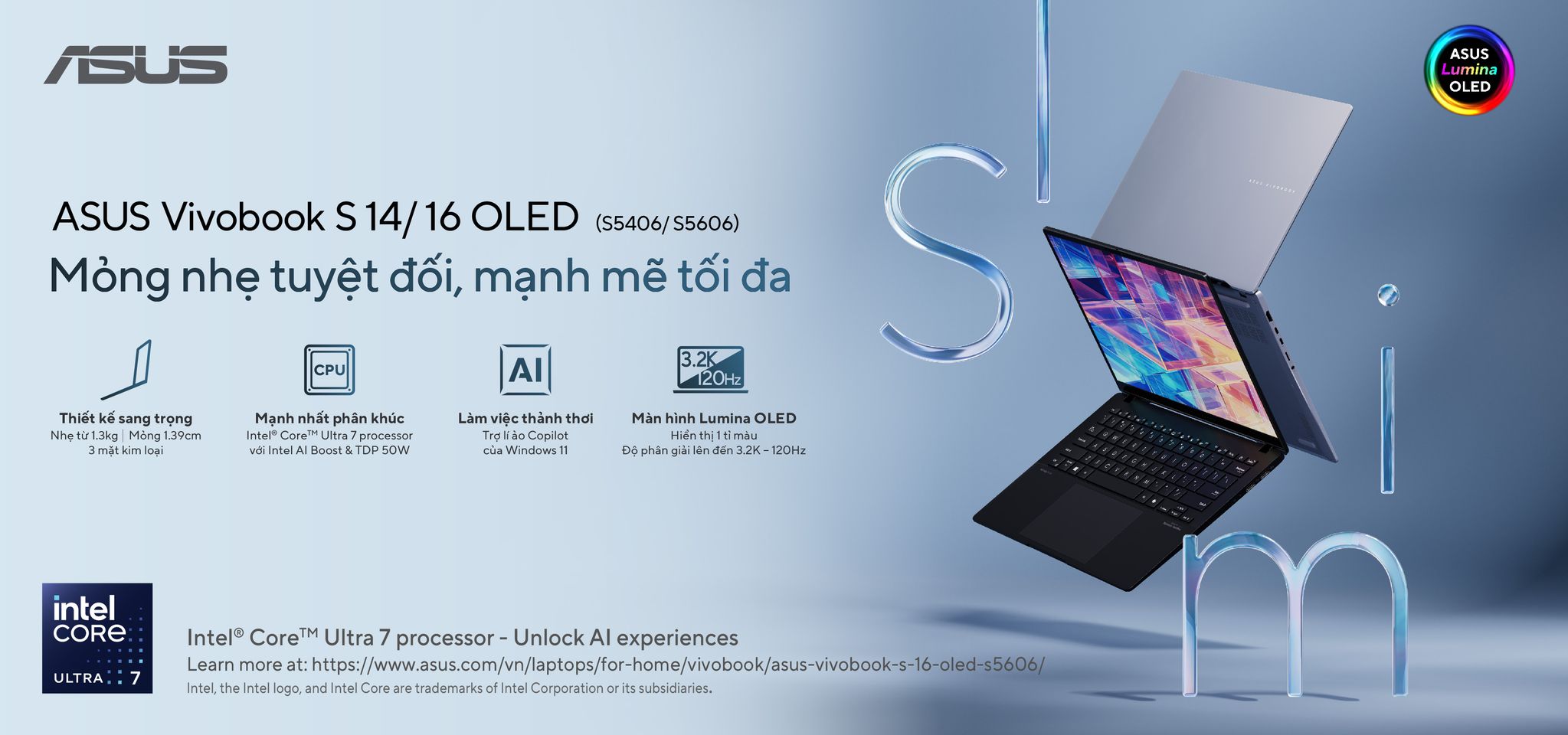 Ra mắt Vivobook S 14 OLED thế hệ hoàn toàn mới với nền tảng Intel Core Ultra tích hợp trí thông minh nhân tạo.